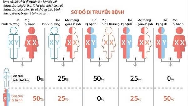 *Bệnh Hemophilia A di truyền lặn liên kết NST X. Bệnh thường gặp ở con trai. Nếu người mẹ mang đột biến dị hợp tử gây bệnh gen F8 thì nguy cơ 50% sinh con trai mắc bệnh và 50% sinh con gái mang gen bệnh giống mẹ.